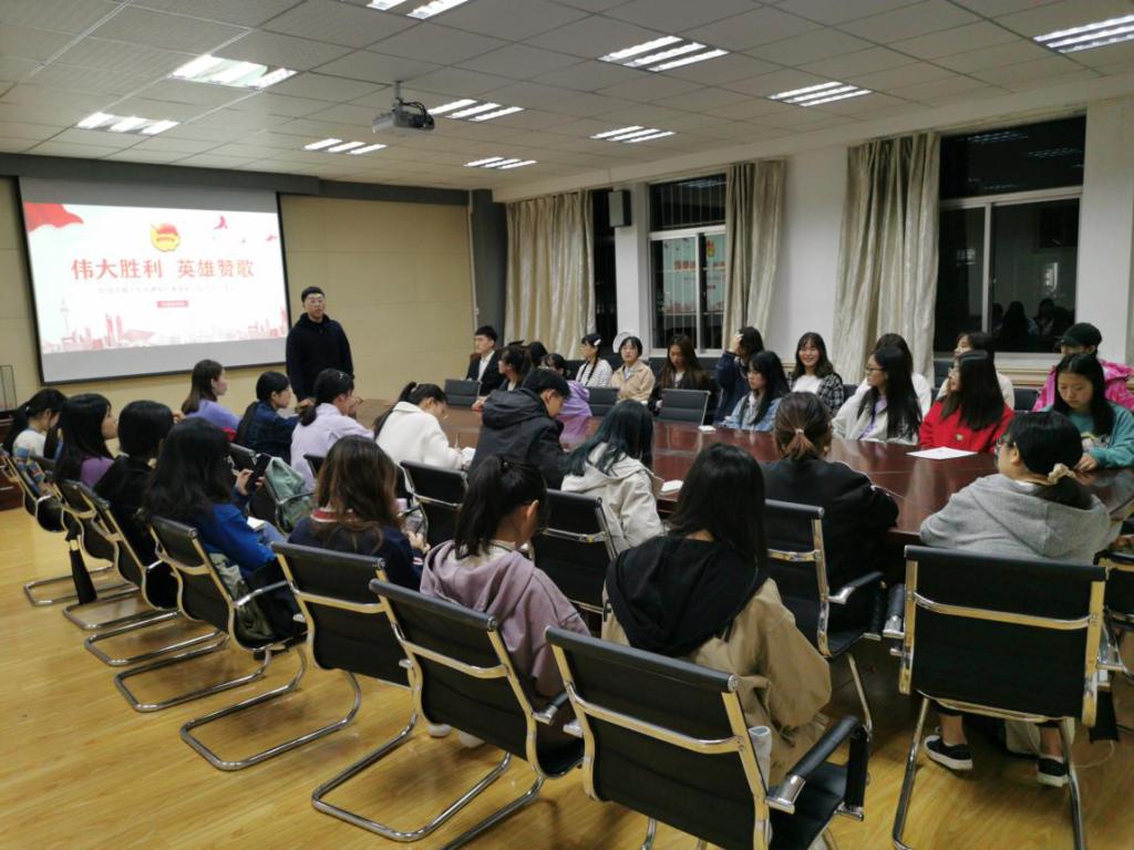 2019级本科生代表孙倩茹、王乐晨、杨隽瑶分享英雄事迹,引导学院青年团员坚定理想信念,培养团员青年以青春之我、奋斗之我传承和弘扬伟大抗美援朝精神。