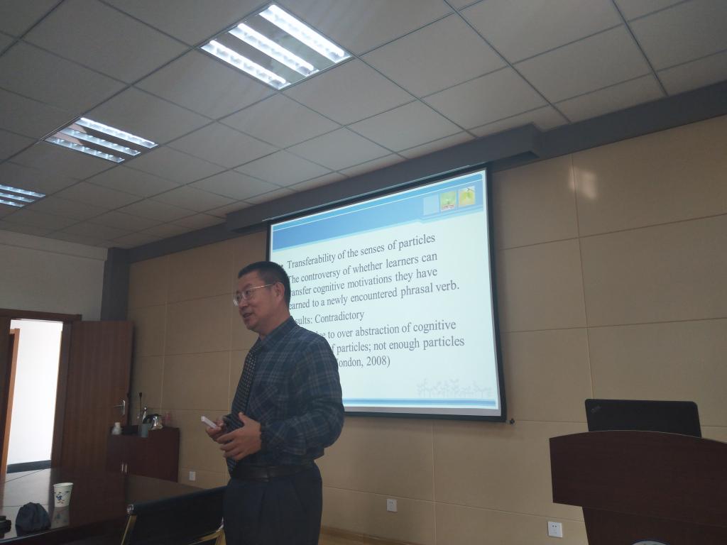 10月28日下午,山东大学太阳集团tcy8722网站博士生导师刘振前教授做客我集团研究生论坛,为大家做了《认知语言学在外语教学中的应用》专题讲座。讲座由院长尹洪山主持,副院长吕耀中、康宁与部分教师和研究生聆听了讲座。