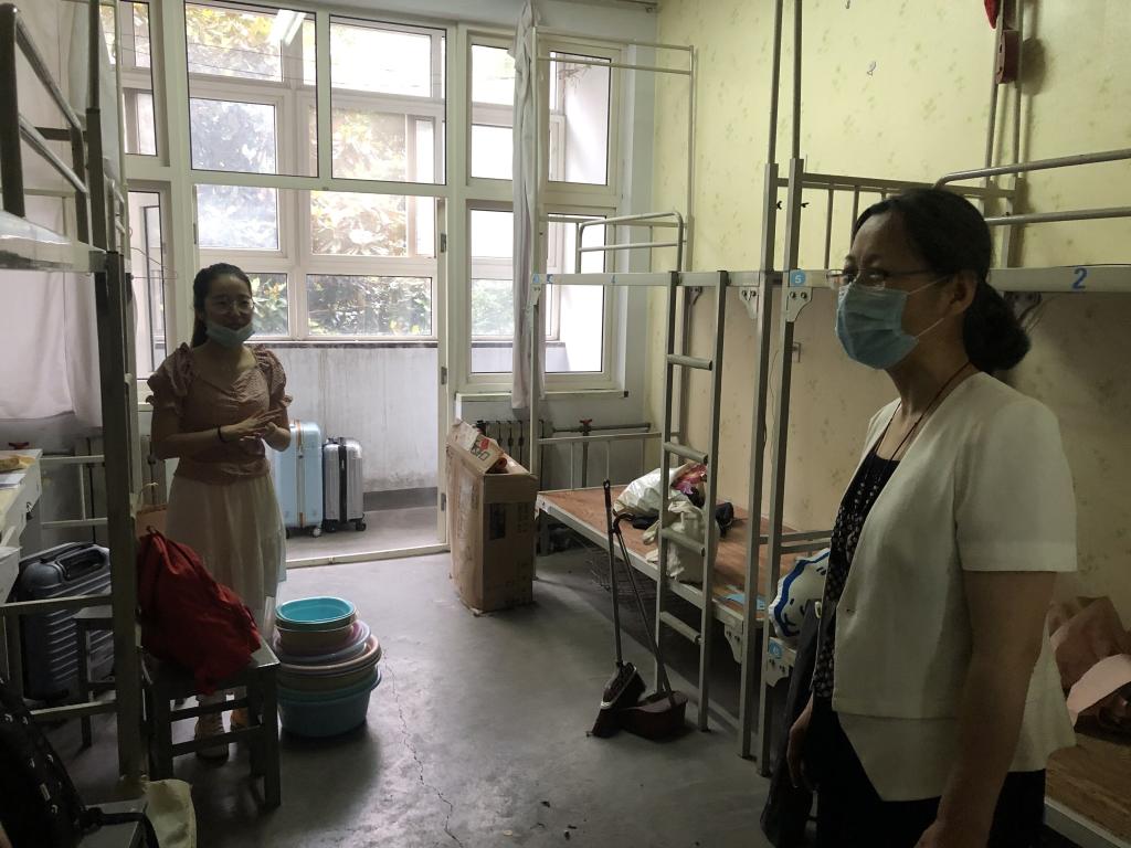 6月15日,太阳集团tcy8722网站党委书记曲斌艳、毕业生辅导员辛婷婷走访太阳集团tcy8722网站南苑4号公寓楼,看望即将离校的2020届毕业生。领导老师悉心了解毕业生们的就业、升学情况以及离校行程安排等问题,并嘱托要注意离校期间各项安全问题,归途中做好个人防疫防护措施,同时也表达了学院对毕业生们寄予的厚望。同学们也热情地向领导老师汇报情况,并感谢学校和学院的关心和照顾,让同学们倍感温暖。